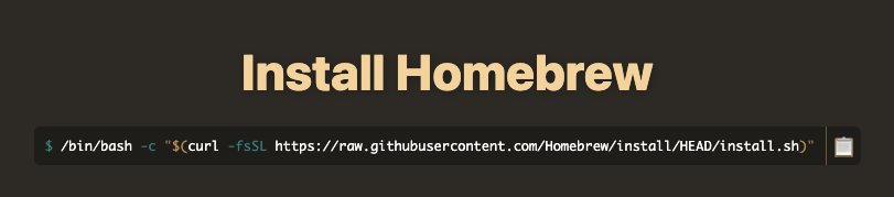 Homebrew는 가장 대표적인 맥의 패키지 관리자입니다. 설치 방법은 Homebrew 공식 사이드에 접속하면 아래 이미지와 같이 설치 명령어가 있는데, 해당 명령어를 복사 붙여넣기 하시면 설치가 시작 됩니다.