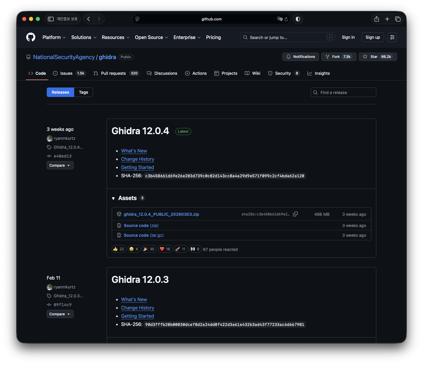 아래 이미지는 후에 설치를 진행해 볼 Ghidra라는 도구의 Github 저장소인데, 다양한 버전이 올라와 있는 것을 확인할 수 있습니다.