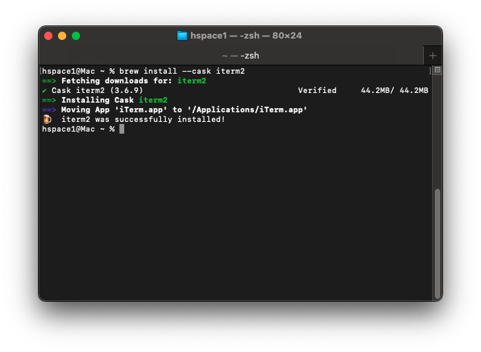 brew install --cask iterm2아래 이미지처럼 터미널에 다시 입력이 가능해 질 때까지 잠깐 기다리시면 됩니다.