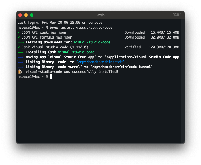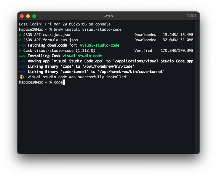 brew install --cask visual-studio-code