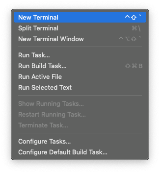 VSCode에서 터미널을 사용하는 방법을 알려드리자면, 상단 메뉴바에서 Terminal > New Terminal을 선택하시면 됩니다.