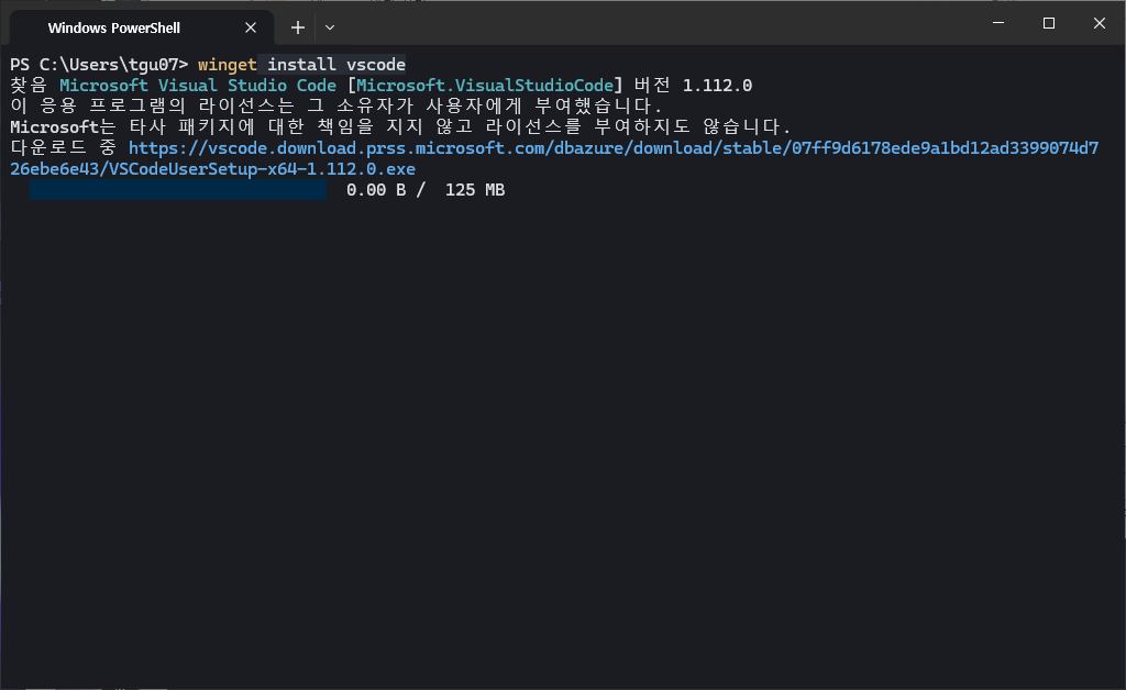 VSCode의 설치를 위해서 설치 파일을 다운로드 후 실행하여도 되지만, 간단하게 아래의 명령어를 터미널에 입력하여 설치를 진행해도 됩니다.