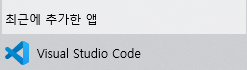 설치가 완료 되면 아래와 같인 최근 추가된 앱에 Visual Studio Code가 설치된 모습을 확인할 수 있습니다.