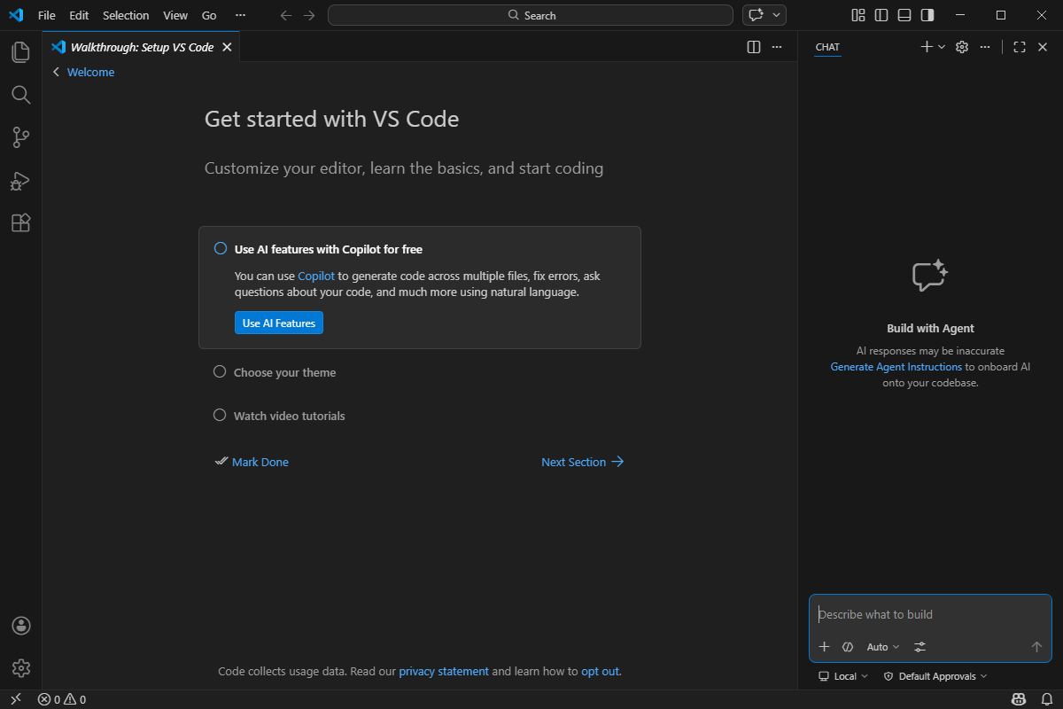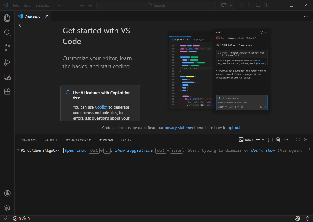 처음으로 VSCode를 실행하면 아래와 같은 화면이 나오게 됩니다.
