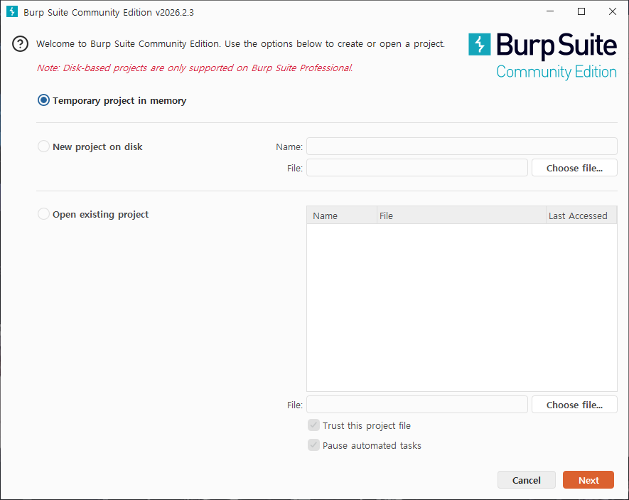 winget install PortSwigger.BurpSuite.Community이후 설치가 진행되는 동안 아래와 같은 창이 나오는데, 설치가 끝날 때까지 기다리면 됩니다.