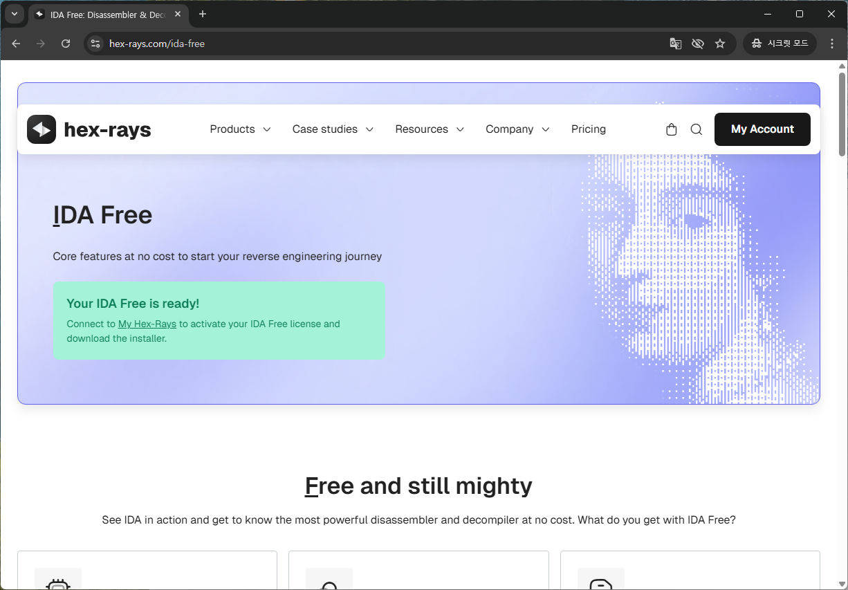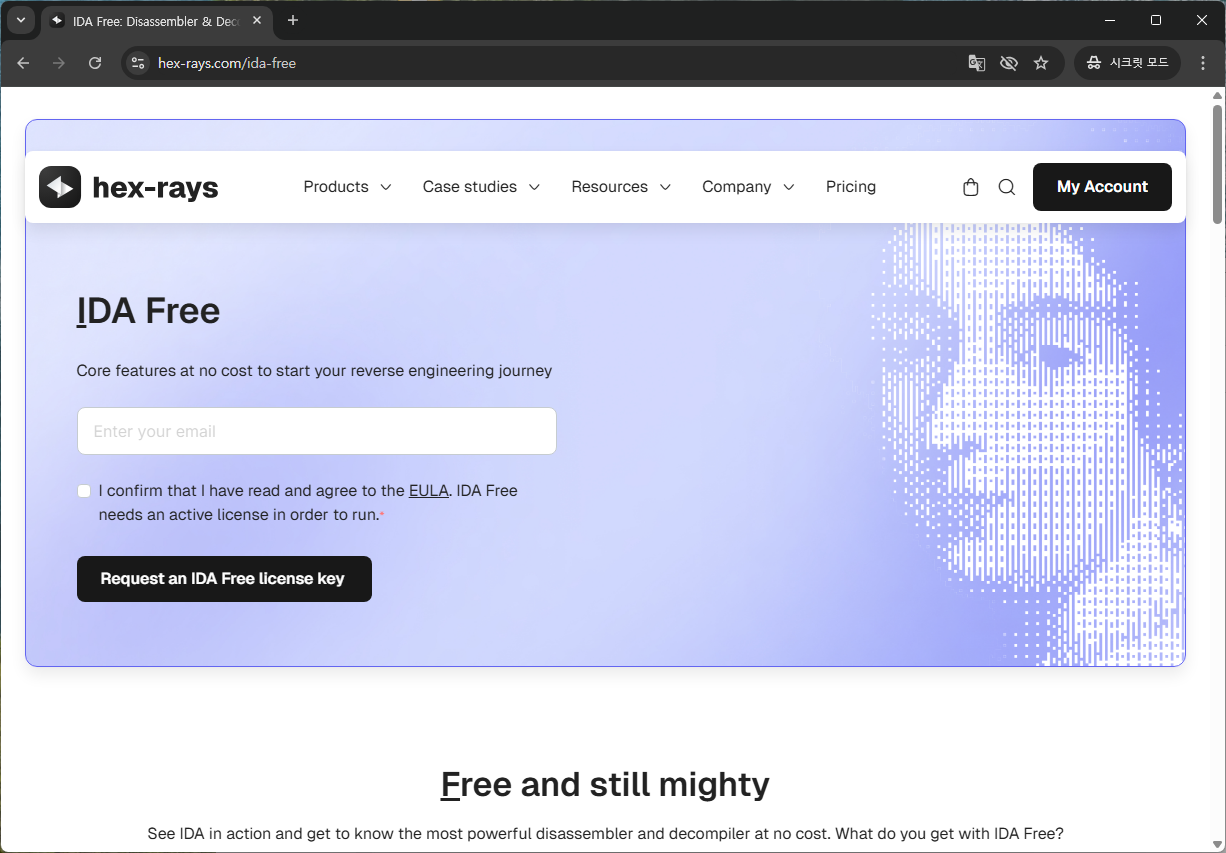 hex-rays 웹사이트에 접속해 Products -> IDA Free를 선택합니다.